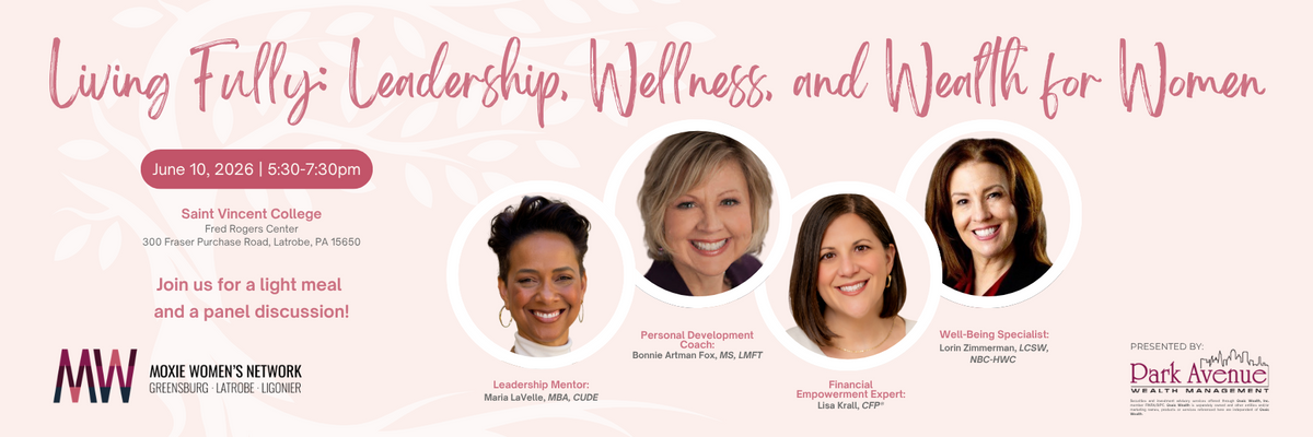 The Moxie Women's Network began in 2018 as a way for professional women who live or work in Greensburg, Latrobe, Ligonier, and surrounding areas to gather for networking, education, and empowerment. The organization was started by Lisa Krall, CFP®, owner of Park Avenue Wealth Management.